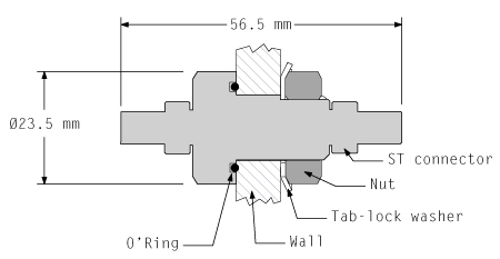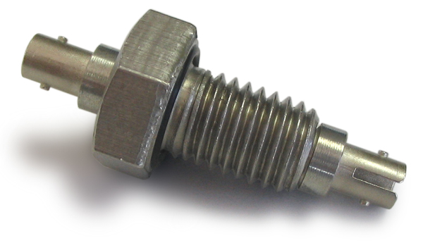 L'OFT-M14 est fabriqué d'acier inoxydable 316 (diamètre de 14 mm et un pas de vis de 2 mm) et inclus un joint torique en Viton® et une rondelle de verrouillage.