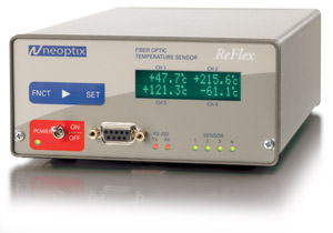 Le Reflex de Neoptix est un instrument multicanal offrant la mesure de températures avec capteurs à fibres optiques dans les applications industrielles et de laboratoire.