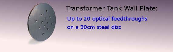 Transformer tank wall mounting plate for Neoptix optical feedthroughs along with the JBox2 enclosure option.